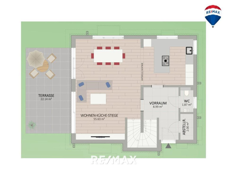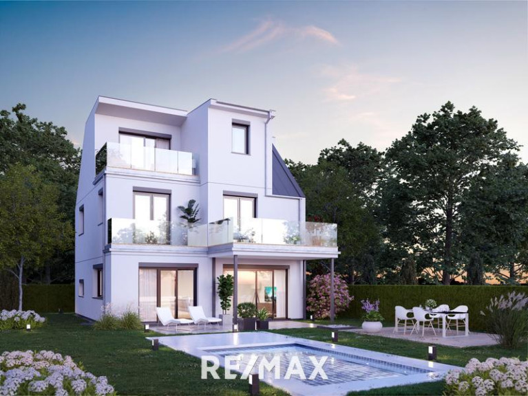 Dieses luxuriöse Einfamilienhaus wird belagsfertig oder auf Wunsch auch schlüsselfertig angeboten. Das Haus ist vollunterkellert und bietet eine Wohnfläche von ca. 161 m², verteilt auf drei Etagen. Weitere ca. 64 m² stehen im Untergeschoß zur Verfügung. Ein besonderes Highlight ist der westseitige Garten mit einer ca. 22 m² großen Terrasse. Das Herz des Hauses bildet der sehr großzügige Wohn-, Ess- und Küchenbereich im Erdgeschoß. Von hier haben Sie direkten Zugang zu der Terrasse und zum Garten. Des Weiteren befinden sich im Erdgeschoß ein WC mit Handwaschbecken sowie ein Abstellraum. Im ersten Obergeschoß stehen Ihnen drei Zimmer - zwei davon mit einer Freifläche - sowie ein großzügiges Badezimmer mit Dusche und Badewanne zur Verfügung. Im zweiten Obergeschoß befindet sich ein geräumiges Zimmer, ein weiteres Badezimmer mit Dusche sowie eine ca. 9,7 m² große Terrasse, von wo aus man einen wunderbaren Blick auf die Alte Doanu genießen kann.