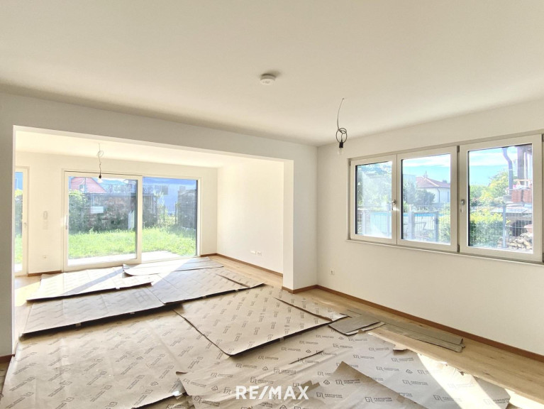 Diese exklusive Doppelhaushälfte wird schlüsselfertig angeboten. Das Haus ist vollunterkellert und bietet eine Wohnnutzfläche von ca. 119 m², verteilt auf zwei Etagen. Weitere ca. 59 m² Nutzfläche stehen Ihnen im Untergeschoß zur Verfügung. Ein besonderes Highlight ist der südwestseitige Garten mit einer ca. 17,5 m² großen Terrasse. Das Herz des Hauses bildet der großzügige Wohn-, Ess- und Küchenbereich auf dem Erdgeschoß. Von hier haben Sie direkten Zugang zur Terrasse und zu dem Garten. Über eine Vollholzstiege gelangt man in das Obergeschoß, wo sich drei Zimmer sowie ein exklusiv ausgestattetes Badezimmer mit Dusche und Badewanne befinden.