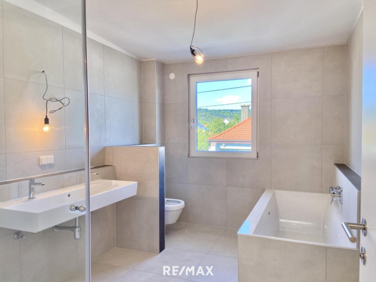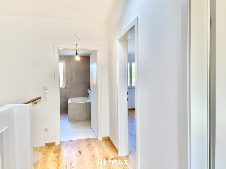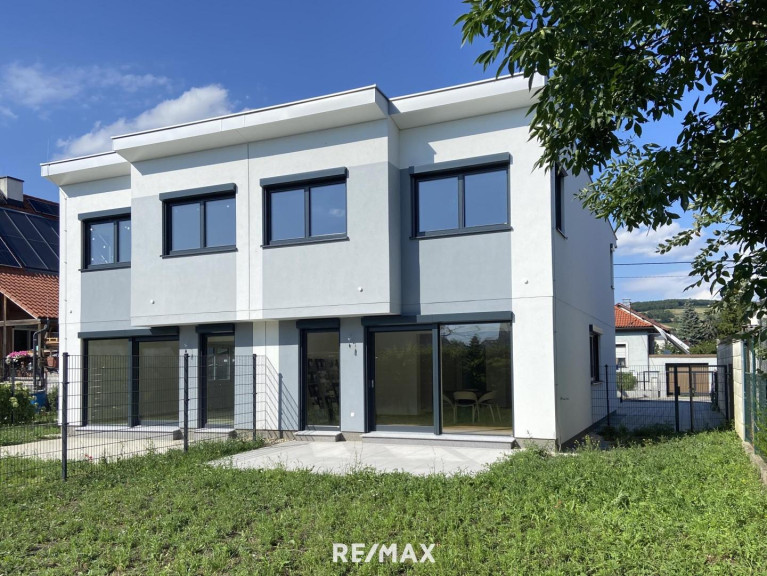 Diese exklusive Doppelhaushälfte wird schlüsselfertig angeboten. Das Haus ist vollunterkellert und bietet eine Wohnnutzfläche von ca. 119 m², verteilt auf zwei Etagen. Weitere ca. 59 m² Nutzfläche stehe Ihnen im Untergeschoß zur Verfügung. Ein besonderes Highlight ist der südwestseitige Garten mit einer ca. 17,5 m² großen Terrasse. Das Herz des Hauses bildet der großzügige Wohn-, Ess- und Küchenbereich auf dem Erdgeschoß. Von hier haben Sie direkten Zugang zur Terrasse und zu dem Garten. Über eine Vollholzstiege gelangt man in das Obergeschoß, wo sich drei Zimmer sowie ein exklusiv ausgestattetes Badezimmer mit Dusche und Badewanne befinden.
