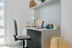 - Einen Schreibtisch, der für produktives Arbeiten konzipiert ist