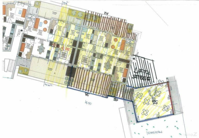 - Die Highlight-Terrasse: Eine weitere überdachte Terrasse mit 56 m² ermöglicht einen einzigartigen Rundumblick und sorgt für Ganztagesbesonnung. Hier können Sie nicht nur entspannen, sondern auch das private Jacuzzi in Kombination mit einem Naßzellenanschluss genießen. Natürlich auf Wunsch mit einer Outdoor-Küche