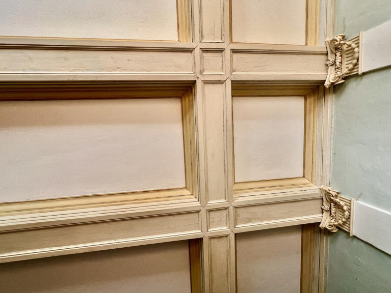 On the first floor there is a salon decorated with five grisailles attributed to the director of the Vienna Academy, Caspar Franz Sambach. In the niches of this room there are four sculptures by L. Grossi. The property is accessed through the wrought iron late baroque garden portal.