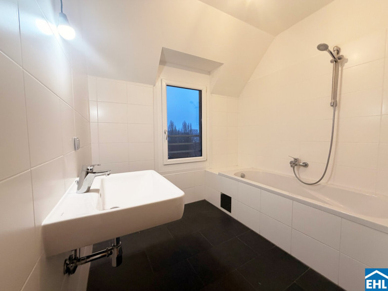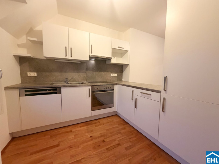 Die Wohnung befindet sich im 1. Dachgeschoss und verfügt über eine großzügige Wohnküche, 2 Schlafzimmer, ein Badezimmer mit Badewanne und Waschmaschinenanschluss, ein separates WC, sowie einen Vorraum.