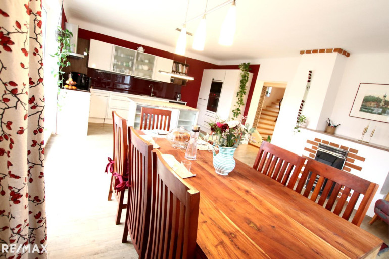 1948 mit dem Bau begonnen, wurde das voll unterkellerte Haus durchgehend erweitert, saniert und instandgehalten. Sieben Zimmer auf zwei Ebenen bieten genügend Platz für Kind und Kegel, Büro und Hobby. Der offen gestaltete Grundriss im Erdgeschoß sowie die durchdacht angelegten Zimmer im Dachgeschoß lassen keine Wünsche übrig.