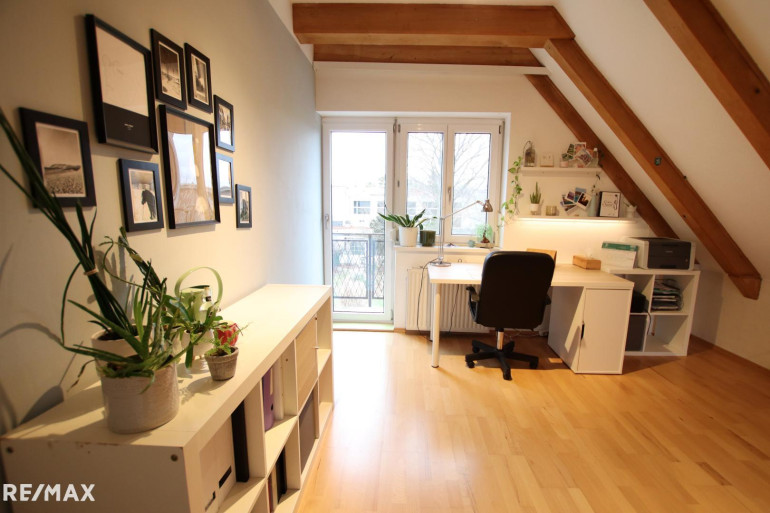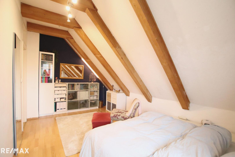 Im ausgebauten Dachgeschoß befinden sich vier Zimmer (zwei davon mit Balkon), sowie 2 Badezimmer, eines davon mit WC. Der darüber gelegene Spitzboden bietet bei Bedarf weitere Nutz-/Staufläche.