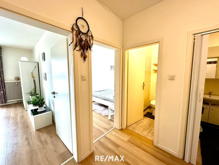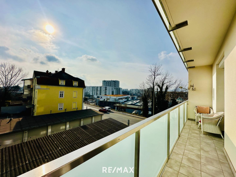 Der großzügige Balkon, der vom Wohnzimmer und Schlafzimmer aus zugänglich ist, wurde mit einem neuen Geländer und Fliesenboden ausgestattet und lädt zum Entspannen und Genießen ein. Die Wohnung befindet sich im 2. Stock eines gepflegten Gebäudes, das selbstverständlich mit einem Lift ausgestattet ist.