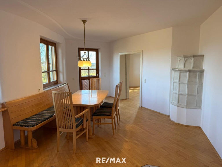 - Offener Küche-Essbereich mit Kachelofen