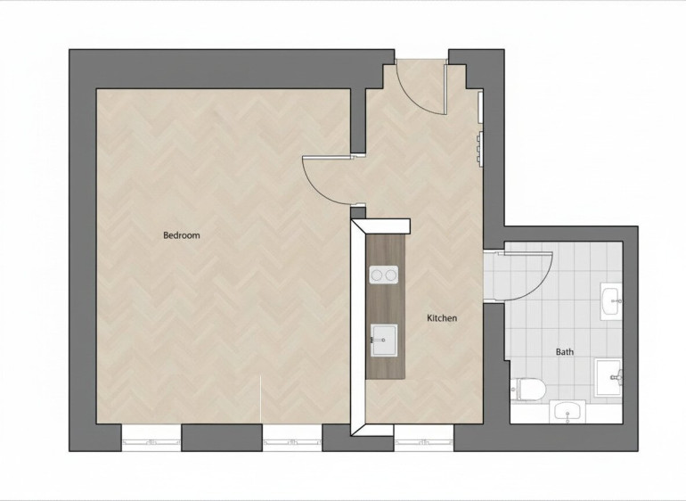 Die Wohnung eignet sich ideal für Paare oder Singles. Der Vorraum bietet Platz für eine funktionale Küchenzeile.