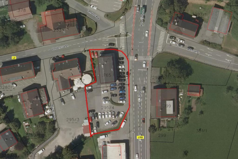Zum Verkauf steht eine erstklassige Gewerbeimmobilie mit attraktiven Entwicklungsmöglichkeiten. Die Liegenschaft befindet sich an einer stark frequentierten Kreuzung mit optimaler Verkehrsanbindung, nur wenige Minuten von der Autobahnauffahrt A14 entfernt.