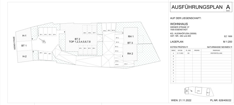 Kleinhöflein - im Winzerviertel Eisenstadts entsteht dieses kleine Wohnbauprojekt mit nur acht Wohnungen und vier Häusern. Es wird eine kleine Gemeinschaft sein, die das 1.749 m² große Grundstück bald Ihr zu Hause nennen wird.
