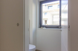 Das Badezimmer bietet viel Platz und verfügt über eine Badewanne eine Dusche. Das separate WC verfügt über ein Fenster und ein Handwaschbecken. Eine große Garderobe / Abstellraum (6 m²) runden die Räumlichkeiten der Top 01 ab.