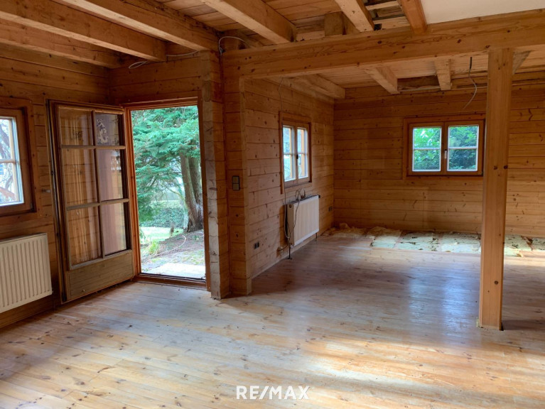 Dieses Holzblockhaus von der Firma Wunsch-Haus aus dem Jahr 1990 verbindet naturnahes Wohnen mit großzügigem Platzangebot und durchdachter Raumaufteilung. Mit einer Wohnfläche von ca. 162 m² auf einem 1.150 m² großen Grundstück bietet es ausreichend Raum für eine Familie oder Individualisten, die Wert auf ein behagliches Zuhause legen. Die massive Holzbauweise sorgt für ein angenehmes Wohnklima, während die Terrasse und der Balkon den Blick auf die idyllische Umgebung freigeben. Ein Garagengebäude an der Einfahrt sowie eine Gartenhütte im weitläufigen Garten runden das Angebot ab.