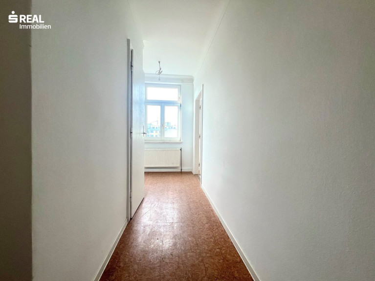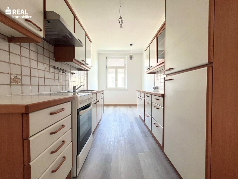 Diese helle Wohnung liegt im 3. Stock ohne Lift eines 1953 wieder aufgebauten Gebäudes nahe Am Spitz