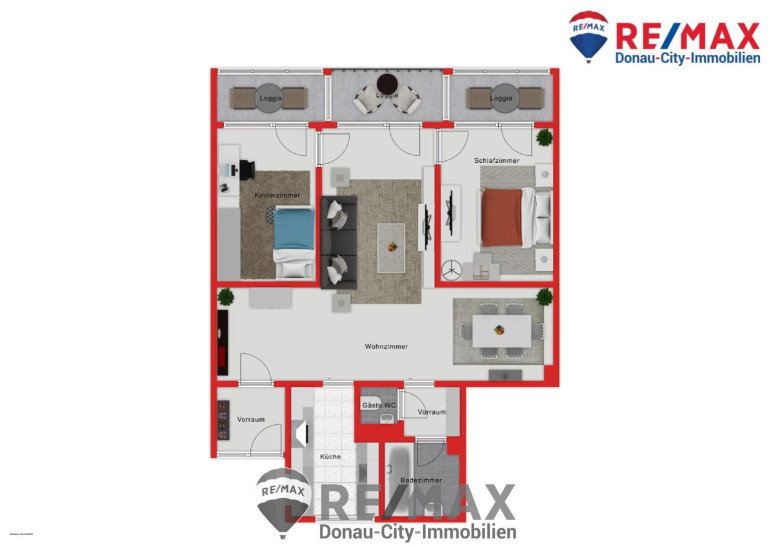 "Charmante 3-Zimmer-Wohnung mit 2 geschlossenen und einer offenen Loggia"