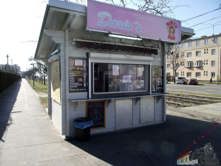 Zum Verkauf gelangt ein eingesessener Würstelstand an der Kreuzung Raxstraße/Neilreichgasse, unmittelbar bei der Straßenbahnstation Linie 67.