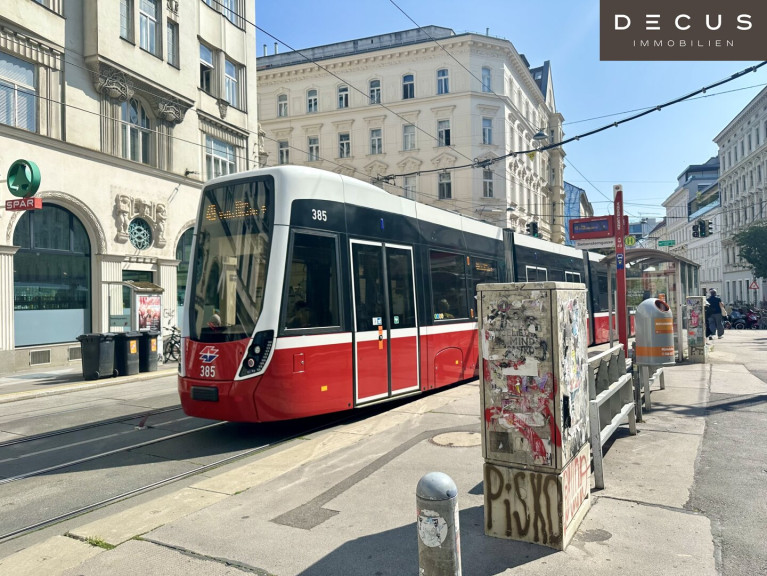 Nur eine 2 Gehminuten von der Haustüre entfernt, befinden sich die Straßenbahnhaltestellen Siebensterngasse/Kirchengasse und Stiftgasse.