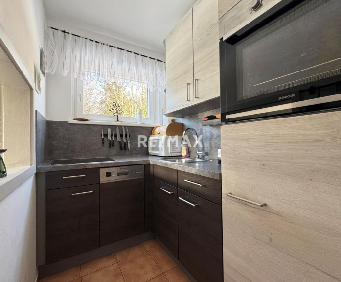 Küche: Die kompakte, im Jahr 2019 sanierte, gut ausgestattete Küche verfügt über alle nötigen Geräte und bietet genug Stauraum für eine funktionale Nutzung. Sie ist durch eine Öffnung mit dem Wohnbereich verbunden, was für modernes Wohnerlebnis sorgt.