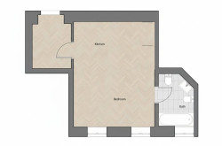 Die Wohnung eignet sich ideal für Paare oder Singles. Über den Vorraum gelangt man in den offenen Wohn-/Schlafbereich mit integrierter Küchenzeile. Dieser bietet viel Platz für individuele Gestaltungsmöglichkeiten.