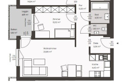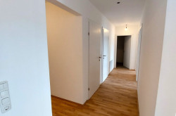 Über den Vorraum bzw. den anschließenden Gang sind alle Räume zentral zu erreichen. Der offen gestaltete Koch-, Wohn- und Essbereich bildet das Herzstück der Wohnung - von hier gelangen Sie auch auf die (von der angrenzenden Wohnung uneinsehbare) Loggia. Die Wohnung verfügt darüber hinaus über zwei Schlafräume, einen großzügigen Schrankraum, ein Badezimmer mit Wanne und Waschtisch und natürlich über ein separates WC.