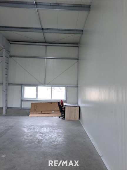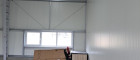 Die Halle hat eine Höhe von 5,50 m und wurde in Sandwichpanelbauweise Isoliert im Jahr 2018 errichtet und ist 10 x10 m.