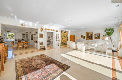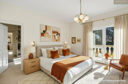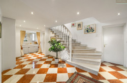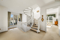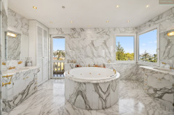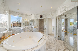 Im darüber liegenden Stockwerk besticht der großzügige Masterbereich mit 2 abtrennbaren Schlafzimmern mit jeweils eigenen Ankleidezimmern und Ausgang auf die vorgelagerte S/W-Terrasse mit Blick in den eigenen Garten. Im Zentrum des eleganten Marmorbadezimmers ist der große Whirlpool, 2 getrennte Waschtische, eine Walk-in-Dusche und ein blickgeschütztes WC komplettieren die gehobene Ausstattung. Ein sehr schöner Ausblick und der direkte Ausgang auf den überdachten N/W-Balkon machen dieses Bad zu etwas ganz besonderem!