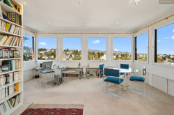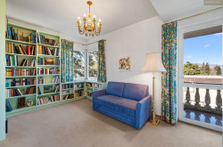 Das höchstgelegene Zimmer der Villa ist das Turmzimmer mit einem wundervollen Blick auf Wien und die grüne Hügellandschaft der Umgebung. Es verfügt über ein Heimkino, eine Kitchenette und ein Gäste-WC.