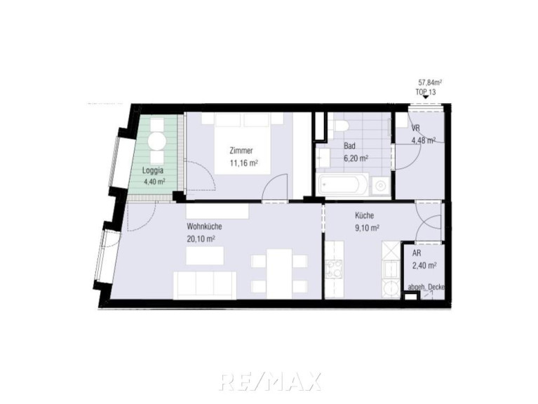 Diese 2-Zimmer-Wohnung im 3. Obergeschoss verfügt über eine ca. 4 m² große Loggia zur Straße. Eine große Wohnküche und ein Schlafzimmer haben beide einen direkten Zugang zur Loggia. Das Bad ist mit einer Badewanne und einem Waschmaschinenanschluss ausgestattet. Ein zusätzlicher Abstellraum bietet viel Stauraum.