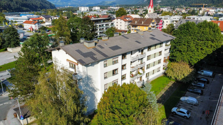 Große helle 4-Zimmer-Wohnung im 3. OG mit ca. 90 m² Wohnfläche + 4 m² Loggiain Kufstein-Zell zu kaufen (Erstbezug nach Sanierung). Ursprüngliches Baujahr ca. 1988, die Sanierungen in der Wohnung erfolgten 2024 (Badausstattung neu, hochwertige Echtholzparkettböden und Heizkörper neu, Elektroinstallation neu). Es gibt keinen eigenen PKW-Parkplatz.