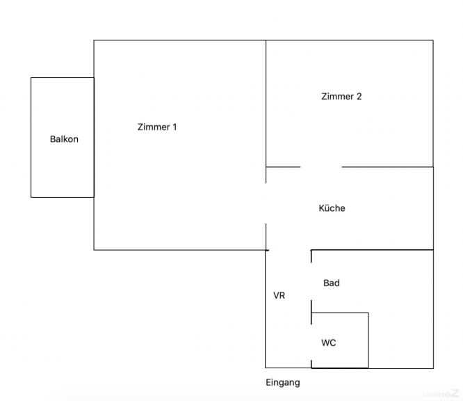 Die Wohnung teilt sich in einen Vorraum, ein Wohnzimmer mit Zugang zum Balkon, ein Schlafzimmer, eine Küche sowie ein Badezimmer und ein separates WC.