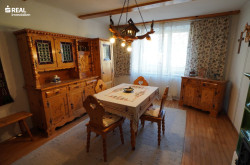 Das Erdgeschoss mit ca. 68 m² Nutzfläche unterteilt sich in: Heizraum, Eingangsbereich, Vorraum, Küche mit einem Holzkochofen, Speis, Badezimmer mit Badewanne und WC, Bauernstube und Schlafzimmer, Abgang zum Kellerraum und Aufgang zum Obergeschoss.