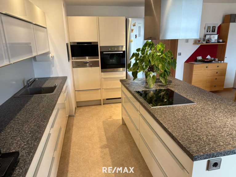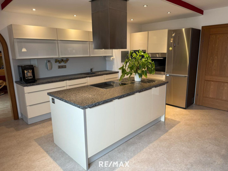 - Eine großzügige modern gestaltete Küche mit Kochinsel