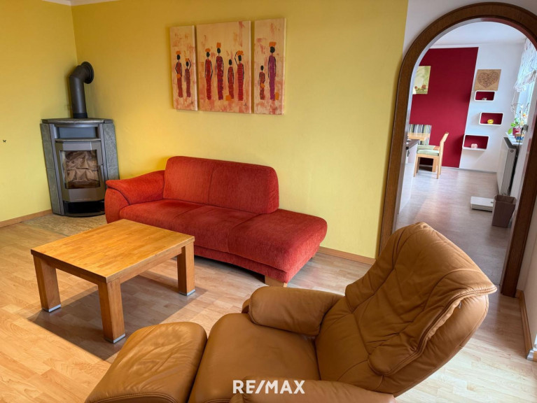 - Ein Wohnzimmer mit gemütlichem Kaminofen