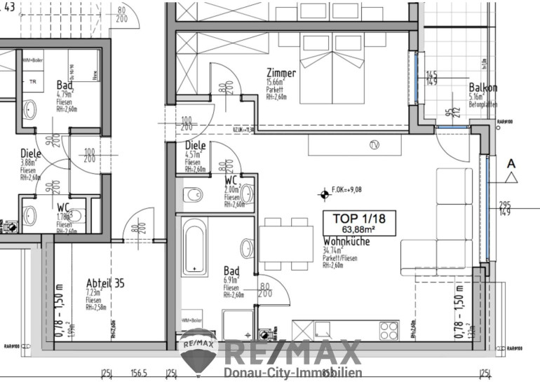 Ebenfalls im Eigentum befindet sich je ein Kellerabteil und ein eigener Garagenplatz in der Tiefgarage.
