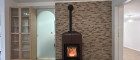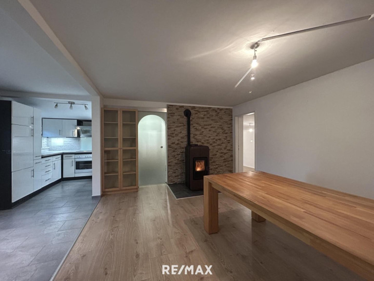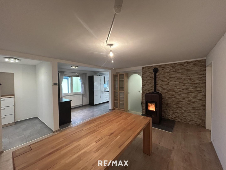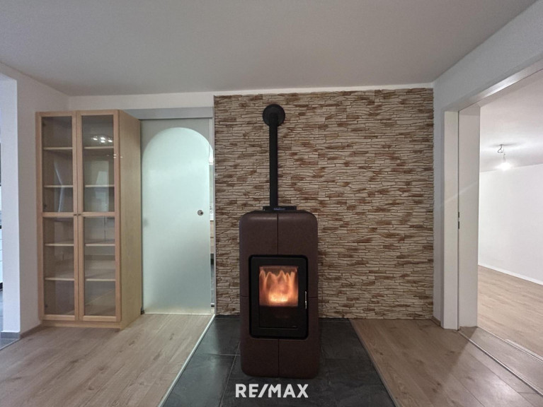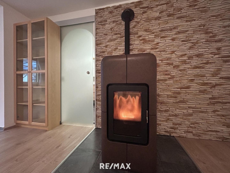 Im Esszimmer sorgt ein Kaminofen für wohlige Wärme und eine gemütliche Stimmung. Dieser Ofen sorgt auch mit einer Leistung von 23 kW für die Heizung im Haus, die mittels Wasserführung in die Heizkörper der Zentralheizung gelangt.