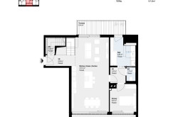 Das Herzstück der Wohnung ist der ca. 37,51 m² große Wohnbereich, der sowohl Zugang zu einem 9,34 m² großen Balkon als auch zu einer 15,62 m² großen Terrasse bietet. Auf dieser Ebene befinden sich zudem ein weiteres Zimmer, ein Badezimmer, ein separates WC sowie ein praktischer Abstellraum.