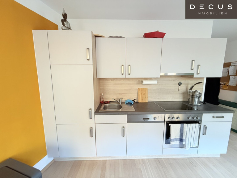 Zur inkludierten Ausstattung in der Wohnung zählen eine qualitativ hochwertige Küche, ein Badezimmer mit edlen Fliesenund hochwertige Parkettböden in allen Wohnräumen.