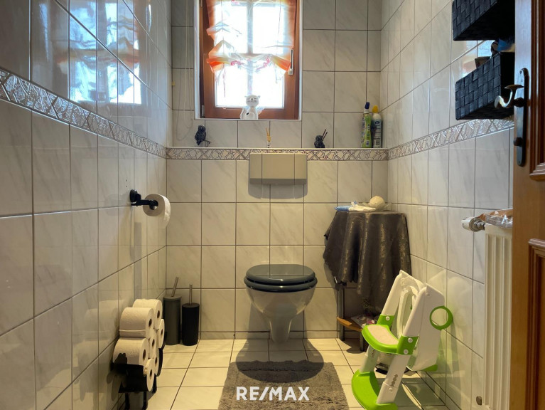 Im ersten Obergeschoß befindet sich die Küche mit Essecke. Ein idealer Raum für gemütliche Mahlzeiten im Kreise der Familie. Das angrenzende Wohnzimmer bietet Zugang zum Balkon. Genießen Sie dort erholsame Stunden im Freien und einen wunderschönen Ausblick in die Umgebung. Zusätzlichen Komfort bieten die zwei Zimmer, die flexibel genutzt werden können, etwa als Schlafzimmer oder als Büro sowie das Badezimmer und das separate WC.