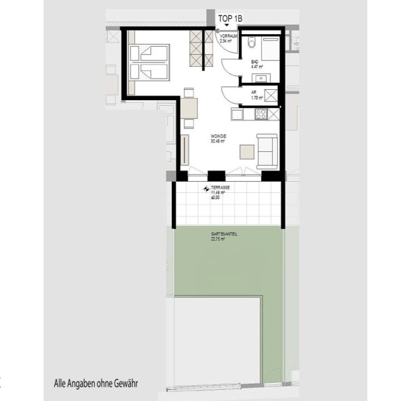 1-Zimmer-Gartenwohnung Top 1B