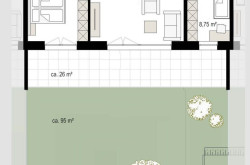 Die 3-Zimmer-Gartenwohnung mit einer Wohnfläche von 69,26 m² ist nach Südosten ausgerichtet.Die Terrasse und der eigene Garten bieten Möglichkeiten für den Aufenthalt im Freien. Im Kaufpreis ist 1 Kellerabteil (ca. 4-5 m²) im Untergeschoß inkludiert, bei Bedarf kann ein Tiefgaragenplatz oder Doppelparker erworben werden. Der Baustart erfolgte bereits, die Fertigstellung ist für Herbst 2026 geplant.