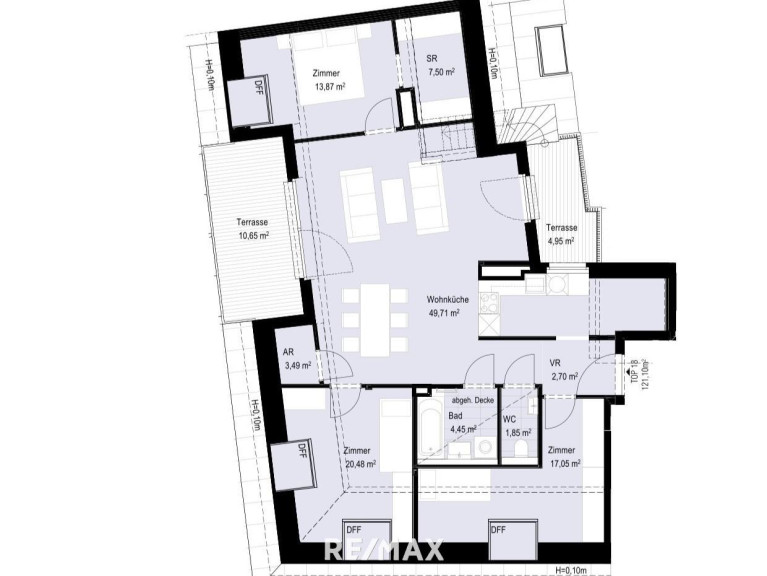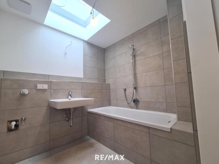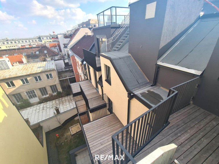 Diese exklusive 4-Zimmer-Wohnung im 2. Dachgeschoss verfügt über zwei Terrassen sowie eine Dachterrasse mit ca. 23,61 m². Die ca. 49,71 m² große Wohnküche ist ideal aufgeteilt. Über die Wohnküche gelangt man auf eine ca. 10,65 m² große, westseitige Terrasse sowie eine ca. 4,95 m² große hofseitige Terrasse, die mit dem Aufgang zur beeindruckenden Dachterrasse ausgestattet ist. Zwei weitere Zimmer sind westseitig, ein Zimmer südseitig ausgerichtet. Das Badezimmer ist mit einer Badewanne und einem Waschmaschinenanschluss ausgestattet. Das WC ist separat und hat ein Waschbecken.