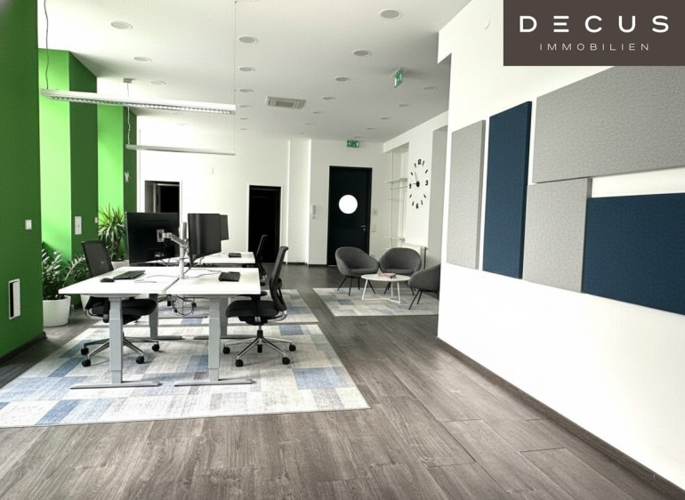 Die hochwertig ausgestattete Fläche mit hohen Räumen besticht durch die ruhige Innenhoflage und besteht aus einem open-space-Büro mit integrierter Küche, einem Besprechungszimmer, einem großzügigen Chef-Zimmer, weiteres Büro, einem Archiv/Abstellraum und 2 getrennten Sanitäreinheiten.