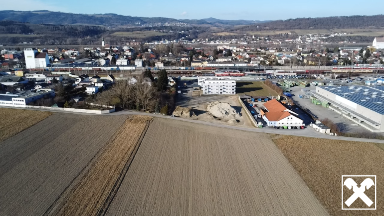 Vor Ort befindet sich das Grundstück in der Nähe der Firmenareale Kerschner und VETROPACK. Die Distanz zur Anschlußstelle der A1 beträgt ungefähr 800 m, selbiges gilt für den Bahnhof.
