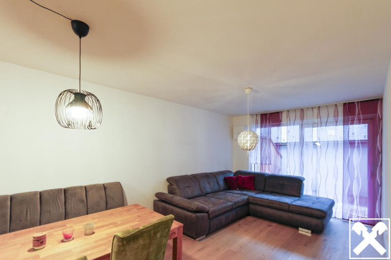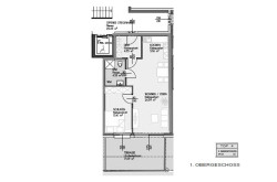 Auf ca. 49 m² Wohnfläche erwartet Sie eine moderne und gepflegte Ausstattung sowie eine durchdachte Raumaufteilung. Der Wohnbereich mit integrierter Küche bietet direkten Zugang zur großzügigen Terrasse (ca. 17 m²).