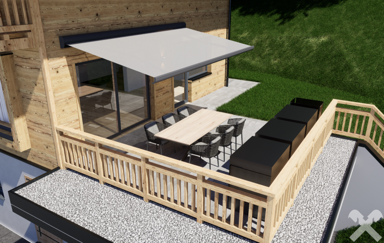 (ca. 4,38 m²) mit atemberaubendem Blick auf die umliegende Bergwelt.