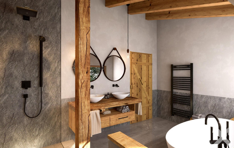- Upper and attic floors: high-quality timber frame construction with antique wood finish