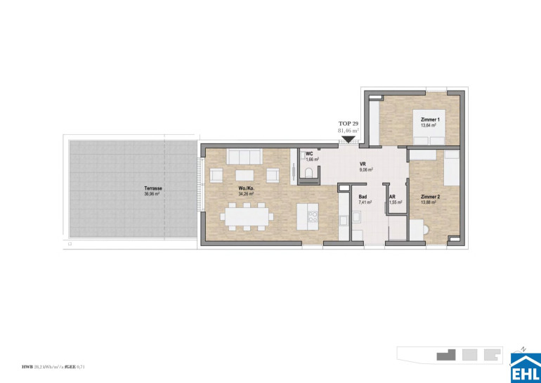 - Energieeffizienz mit einem HWB von 28,2 kWh/m²/a und einem fGEE von 0,71