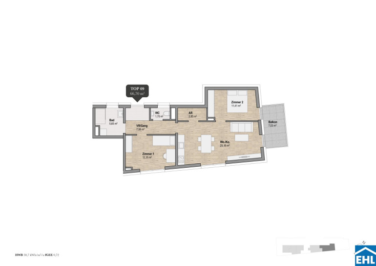 - HWB: 30,7 kWh/m²/a, fGEE: 0,72