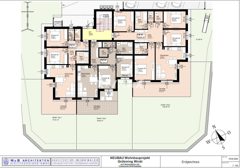 Die gegenständliche Wohnung TOP 3 ist im EG angesiedelt und hat bei einer Gesamtfläche von ca. 108,44m² folgende Raumaufteilung
