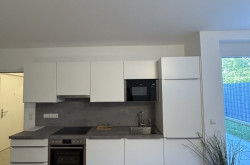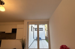 Die intelligente Raumaufteilung trennt die Küche geschickt vom Wohnbereich, die Einbauküche selbst wird mit ihren topaktuellen Geräten jeglichen Ansprüchen gerecht. Die gesamten Möbel und Lampen lassen einen sofort ein einladendes Gefühl spüren. Von der gemütlichen Coach aus blicken Sie auf Ihre eigene Terrasse. Hier können Sie in der Sonne verweilen und nach einem anstrengenden Tag Ihre Ruhe genießen. Das Highlight zu der Terrasse ist der eigene Garten. Welch ein Luxus mitten in Wien einen eigenen Garten pflegen zu dürfen.