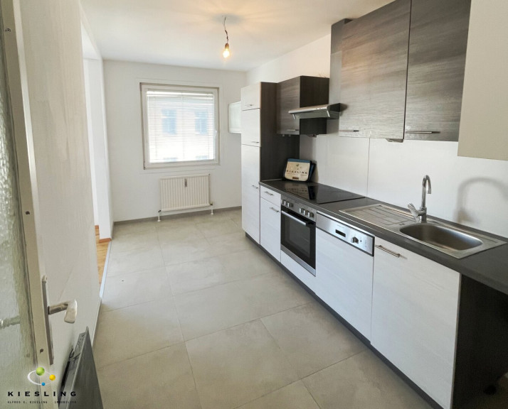 Drei der insgesamt vier Zimmer (Schlafzimmer/Kinderzimmer/Arbeitszimmer) sind direkt vom Vorraum/Gangbereich aus begehbar. So wie das WC, das Badezimmer und die Küche. Das vierte Zimmer (ideales Esszimmer) können Sie über die Küche erreichen. Diese ist voll ausgestattet mit Herd, Backofen, Geschirrspüler, Kühlschrank, Dunstabzug, Waschbecken, Arbeitsplatte, Ober- und Unterschränke sowie mit einem Waschmaschinenanschluss.